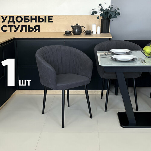 Стул кухонный «Версаль», мягкий, Темно-серый с черными опорами, комплект 1 шт: сравнение цен, характеристики, фото, актуальное наличие и цены.