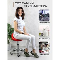 Купить Стул мастера GL-BR-004 мягкий, набор 5 шт, на колесиках, с низкой спинкой, цвет красный с доставкой по всей России.