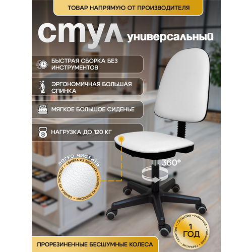 Классический стул Престиж долгое время используется во многих офисах, школах, медицинских учреждениях, для салонов красоты, для дома и т. д. Отсутствие подлокотников делает его универсальным решением для любого пространства. Благодаря своей эргономичности, а именно удобной анатомической большой спинке и большому мягкому сиденью, данный офисный стул подойдет как взрослым, так и детям. Стул обладает немаловажным преимуществом - спинка регулируется по вылету и за счет площади охвата - позволяет спине отдыхать. Обивка выполнена из качественной эко-кожи, которая прослужит дольше обычной и легко чистится, сохраняет свой внешний вид на протяжении длительного времени. Наполнитель из мебельного поролона повышенной жесткости. Стул имеет пневматическую регулировку высоты. Колеса у стула прорезиненные, что делает его бесшумным, и не портят поверхность, по которой перемещается (можно не переживать за ламинат или паркет, к примеру). Диаметр крестовины - 56 см; Размер сиденья - 39x44 см; Размер спинки - 50x43 см. Ход газлифта- 14 см; Высота регулировки сиденья стула от пола: минимальная - приблизительно 41 см, максимальная - приблизительно 55 см. Максимальная нагрузка на кресло - 120 кг. Кресло Престиж подойдет для мастеров разного вида деятельности, включая мастеров маникюра, педикюра, косметологов, визажистов, а также парикмахерам, барберам, лешмейкерам, тату-мастерам, швеям, музыкантам и т. д. Данная модель универсальна, поэтому ее можно использовать также как компьютерное кресло (компьютерный стул), офисное кресло на колесах, стул для школьника, стул для учебы. Кресло Престиж - прекрасный подарок родным и близким на любой маленький и большой праздник, будь то новый год, рождество, день рождения, 14 февраля, 23 февраля или 8 марта.