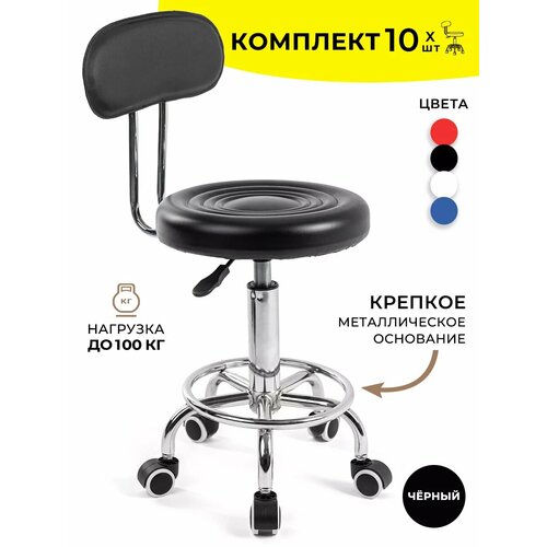 Встречайте те самые стулья мастера! Представляем вам набор 10 шт. мягких стульев на колесиках со спинкой Gemlux GL-BR-003. Это универсальная мебель для косметологического и массажного кабинета, парикмахерской, тату студии и салона красоты. Маленькие компактные крутящиеся табуреты на колесах имеют регулировку высоты, удобное круглое сиденье и мягкую высокую спинку, которая обеспечивает поддержку спины и позвоночника. Комплект стульев идеально подойдет для мастеров маникюра и педикюра, парикмахеров и барберов, косметологов, бровистов и визажистов, лешмейкеров (мастеров по наращиванию ресниц) и массажистов. Даже швеи оценят их по достоинству! И это еще не все: наши стулья настолько многофункциональны, что могут использоваться и как мебель для дома и офиса, дачная мебель. Вы можете разместить их в любой комнате: кухне, гостиной, столовой, спальне, кабинете, на балконе. Это отличные кухонные, полубарные и интерьерные стулья для туалетного и макияжного столика. И конечно, они подойдут в качестве офисных кресел для ПК, стульев для письменного и рабочего стола, детских стульчиков для школьников, для девочек и мальчиков, а также в качестве компьютерной и геймерской мебели. Сиденье выполнено из фанеры, обтянутой толстым слоем качественного плотного мебельного поролона. Обивка – устойчивая к истиранию экокожа. Крестовина кресла с кольцевой подножкой изготовлена из металла, в отличие от большинства аналогов на рынке, укомплектованных пластиковым каркасом. Это обеспечивает прочность и безопасность. Вы можете быть уверены, что металлические стулья подойдут и для детей, и для взрослых. Стул выдерживает нагрузку до 100 кг. Усиленный газлифт регулирует высоту сиденья в пределах от 45 до 58 см. Пять нейлоновых колес обеспечивают плавный ход по любой поверхности, не заедают и не царапают напольное покрытие. Стулья поставляются в разобранном виде, с простой и понятной инструкцией по сборке. Наслаждайтесь уютом и комфортом с высокими стульями, которые сочетают в себе стиль, эргономику и надежность!