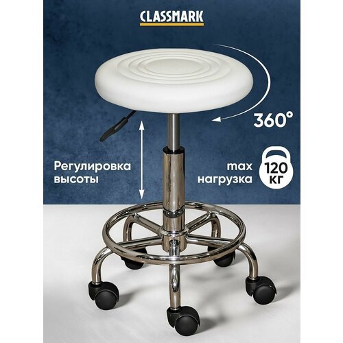 Купить Стул мастера на колесиках Classmark мягкий, регулируемый, для мастера маникюра и педикюра, для наращивания ресниц, белый с доставкой по всей России.