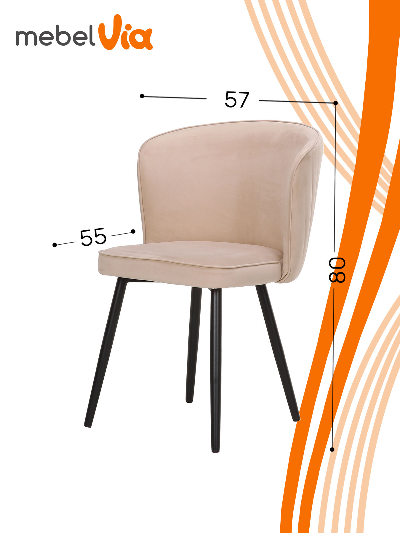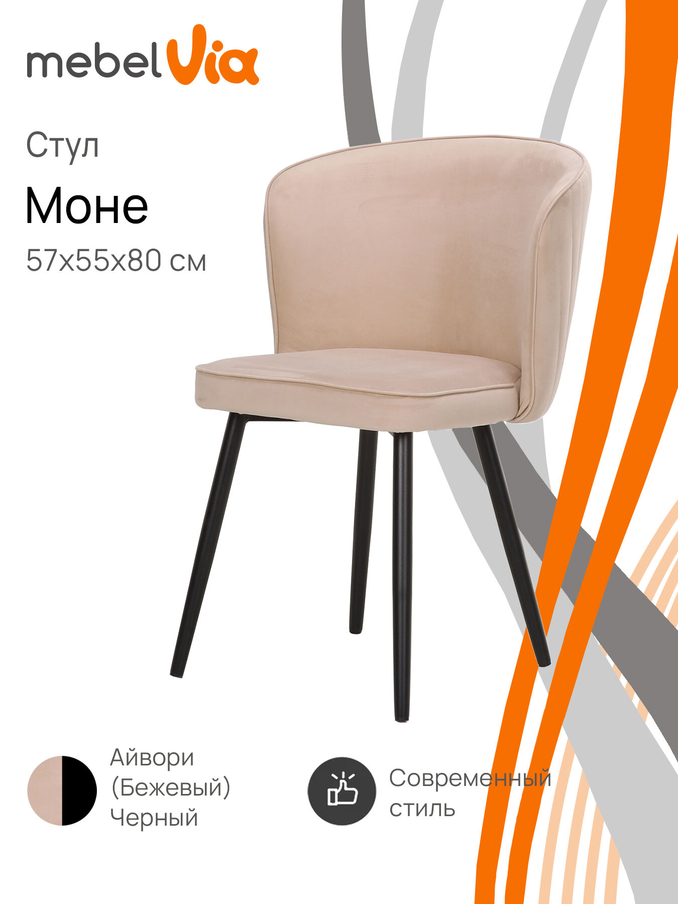 Стул Моне 2 шт, велюр, металл, айвори (бежевый)/черный, 57х55х80 см, MebelVia: сравнение цен, характеристики, фото, актуальное наличие и цены.