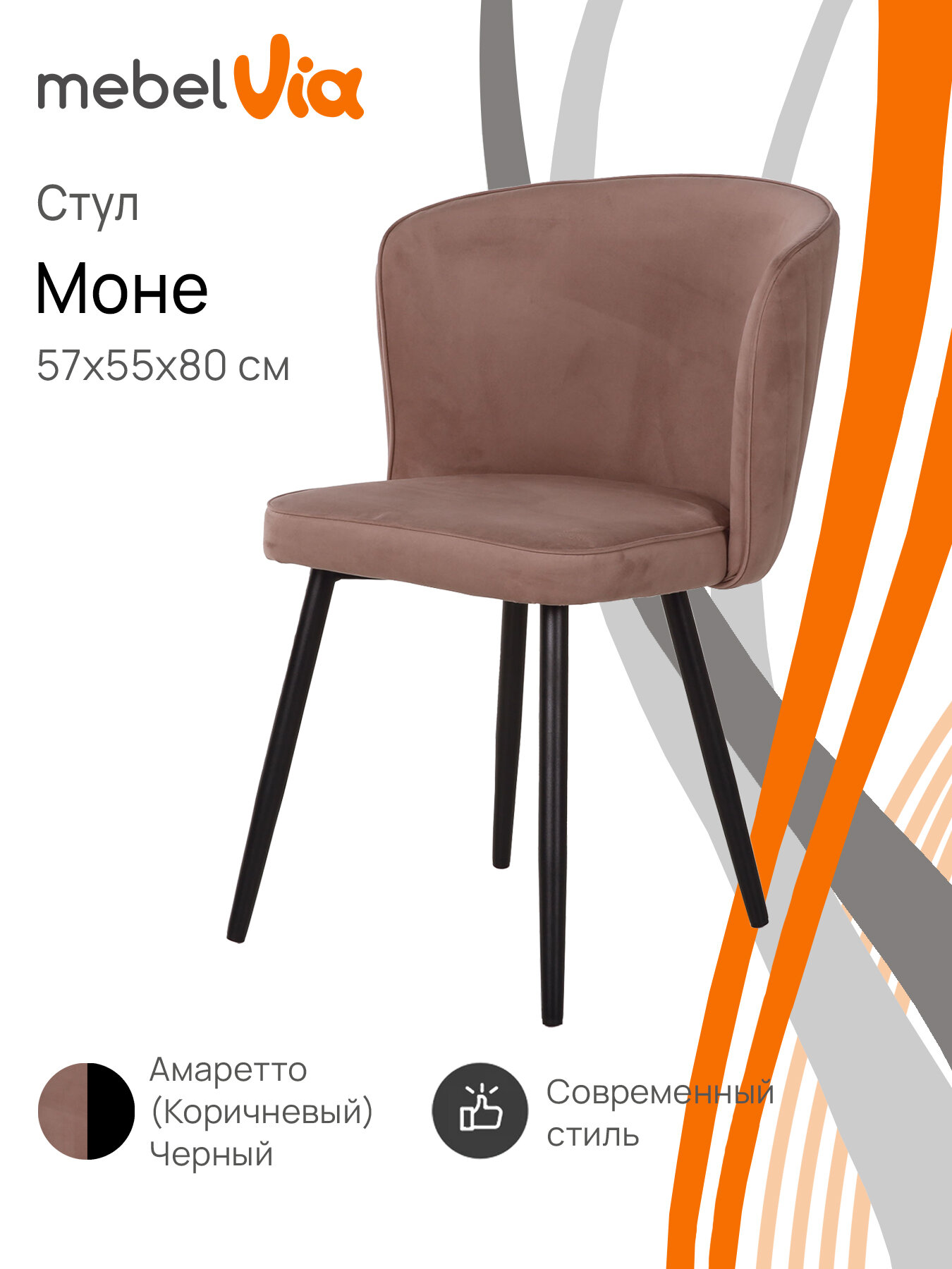 Стул Моне 2 шт, велюр, металл, амаретто (коричневый)/черный, 57х55х80 см, MebelVia: сравнение цен, характеристики, фото, актуальное наличие и цены.