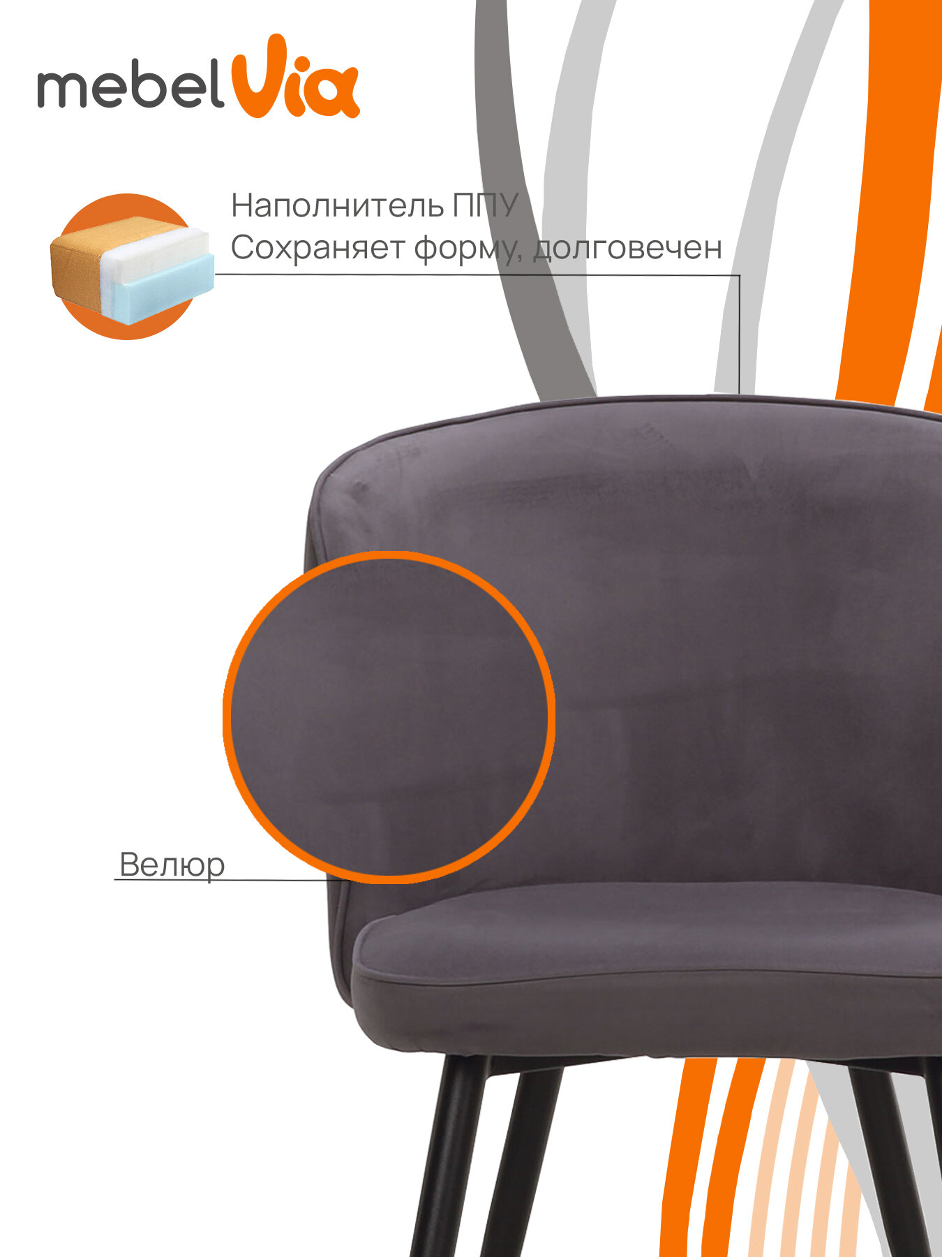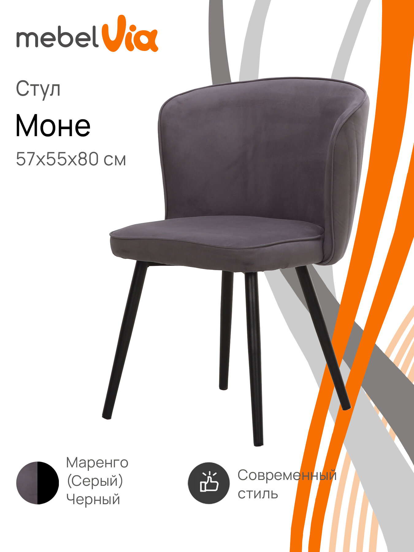 Стул Моне 2 шт, велюр, металл, маренго (серый)/черный, 57х55х80 см, MebelVia: сравнение цен, характеристики, фото, актуальное наличие и цены.