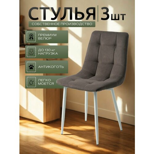 Стулья для кухни / стулья кухонные комплект 3 штуки Чили, велюр коричнево-серый, белые ножки: сравнение цен, характеристики, фото, актуальное наличие и цены.