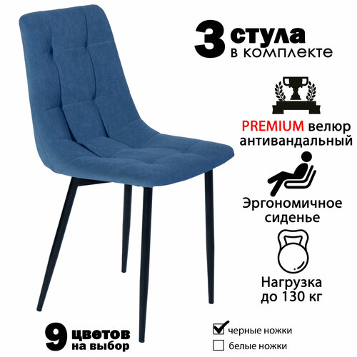 Купить Стулья для кухни, комплект из 3 кухонных стульев чили, велюр, синие, черные ножки с доставкой по всей России. Стулья для кухни, комплект из 3 кухонных стульев чили, велюр, синие, черные ножки: сравнение цен, характеристики, фото, актуальное наличие и цены.