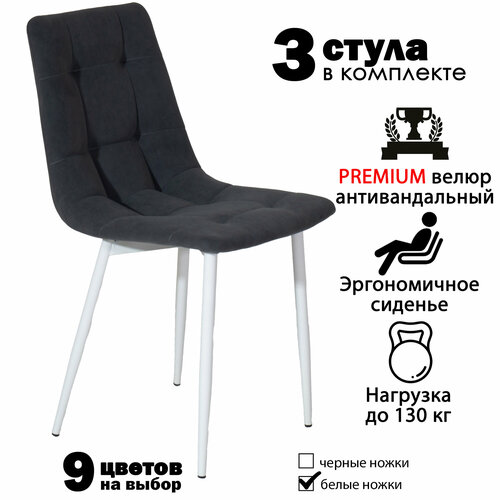 Купить Стулья для кухни, комплект из 3 кухонных стульев чили, велюр, темно-серые, белые ножки с доставкой по всей России. Стулья для кухни, комплект из 3 кухонных стульев чили, велюр, темно-серые, белые ножки: сравнение цен, характеристики, фото, актуальное наличие и цены.