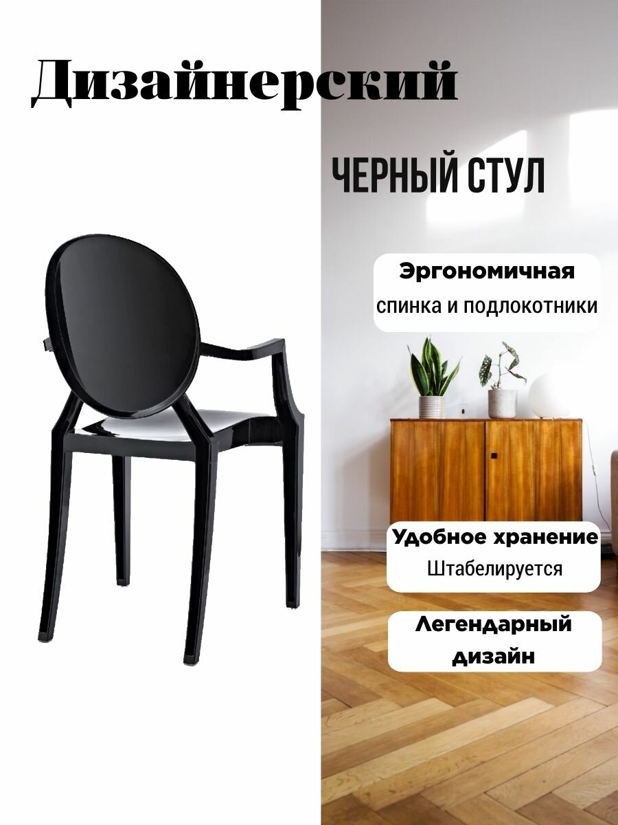 Стул пластиковый прозрачный черный со спинкой и подлокотниками 1шт Louis Ghost Стул пластиковый для кухни, дома и сада Blesslight: сравнение цен, характеристики, фото, актуальное наличие и цены.