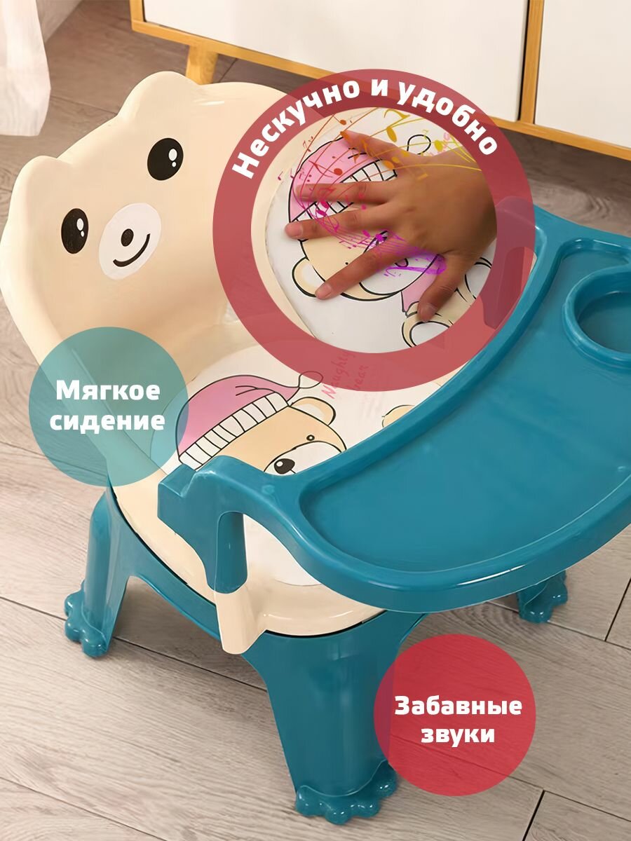 Представляем вам маленький стульчик детский пластиковый со съемным столиком для кормления малышей и спинкой. Его размеры 50х36х34 см делают стул кресло с подлокотниками и мягкой сидушкой идеальным решением для маленьких обеденных уголков на кухне или игровых комнат. Этот обеденный стульчик имеет съемный стол, что обеспечивает практичность при использовании. На него удобно ставить разные аксессуары. Идеально подходит для игр, рисования и занятий творчеством Дизайн стульчика выполнен в мультяшной форме, что делает его привлекательным для детей. Удобная спинка создает комфортное сидение, при этом обеспечивая правильную осанку мальчику и девочке. Округлый дизайн и гладкий корпус без острых углов делают его безопасным и заботливым выбором для вашего ребенка. Этот стул дарит вашему малышу уют и защиту, так что он может чувствовать себя как дома в любое время. Товары для малыша собраны внимательно с использованием качественных материалов. Этот стильный и красивый детский стульчик пластмассовый также легко моется, что делает его удобным для вас. Уникальный и милый дизайн делает мебель привлекательным и для вас. Так что дайте вашему малышу этот уютный стульчик, который станет его любимым местом, где он сможет кормить даже своих кукол!