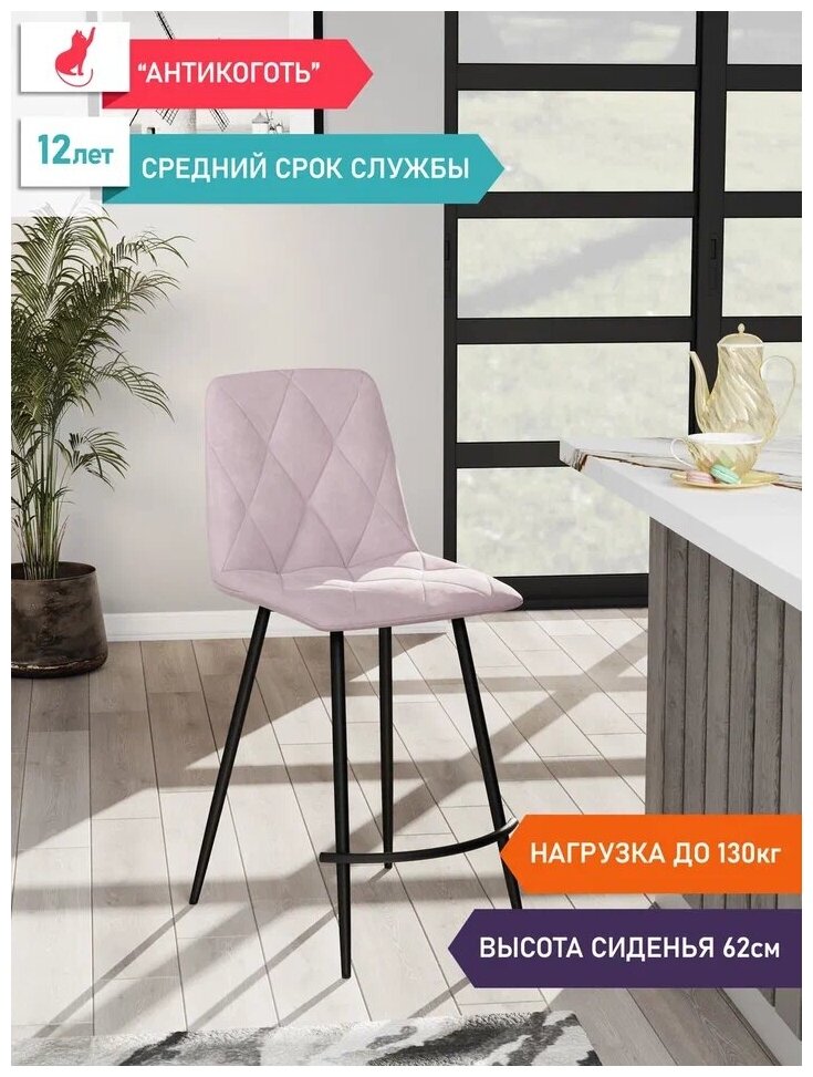 Стул Дом Столов Ричи, полубарный, велюр, подставка для ног, 1шт. СтолБери: сравнение цен, характеристики, фото, актуальное наличие и цены.