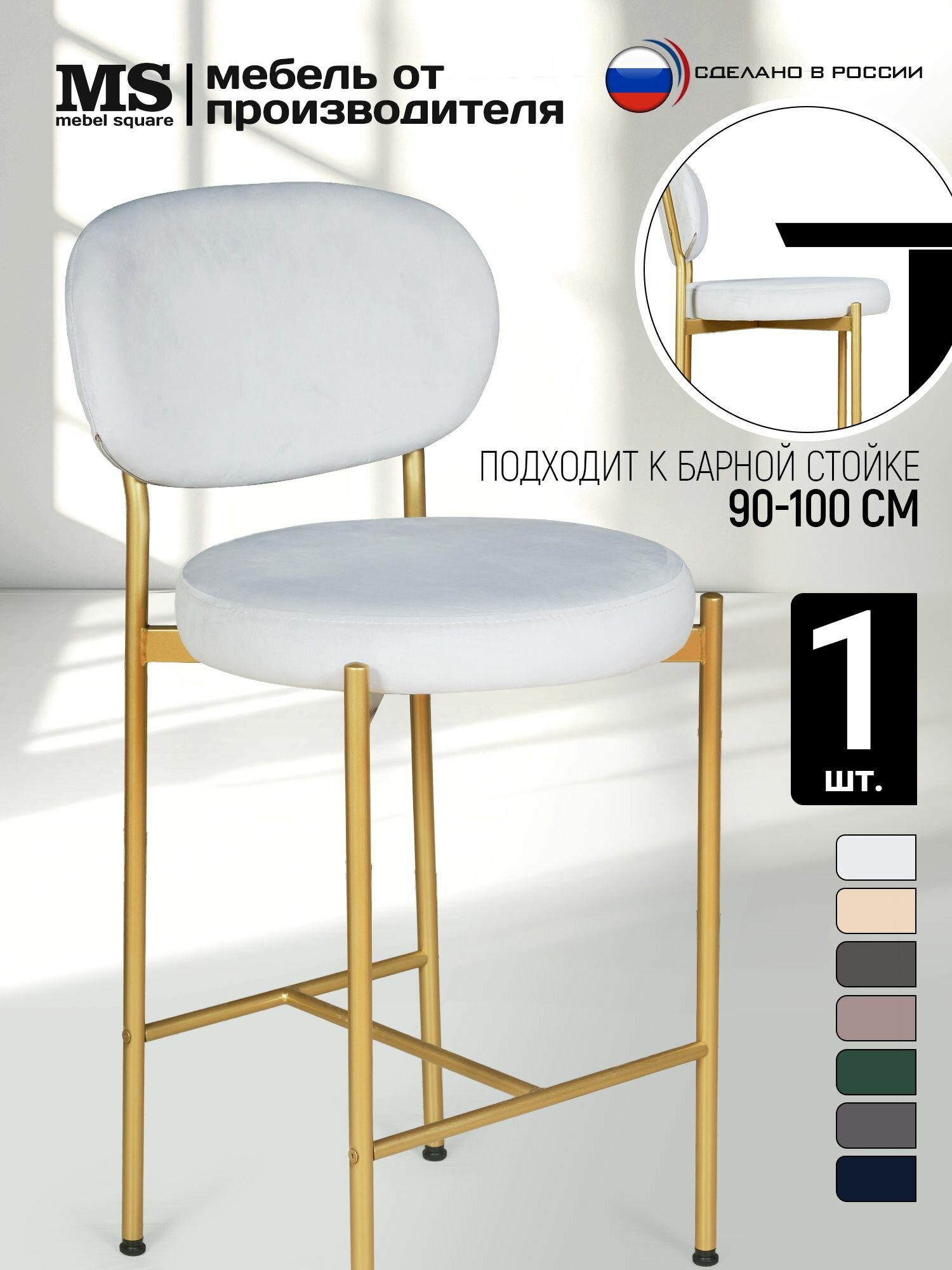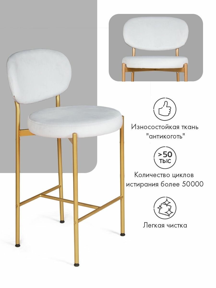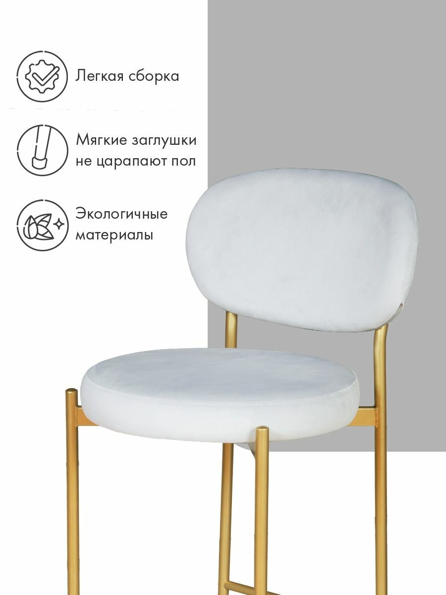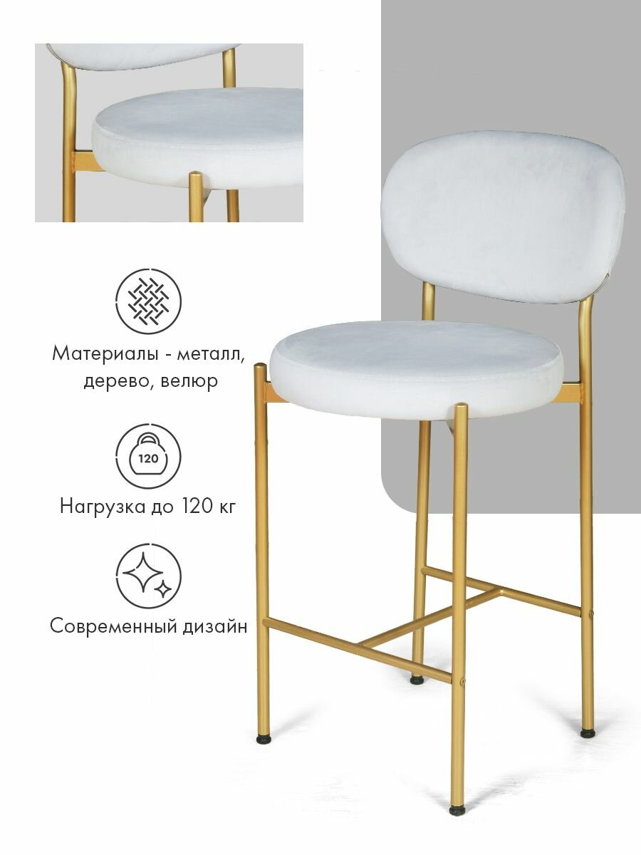 Комплект полубарных стульев с мягким велюровым сиденьем и спинкой — функциональное решение для кухни, гостиной или домашнего бара. Стильный современный дизайн с изящной округлой спинкой и металлическими ножками отлично впишется в любой интерьер, а широкий выбор расцветок позволит подобрать вариант на вкус. Оптимальная высота подходит для барной стойки 90–110 см, обеспечивая удобство во время трапез или общения. Прочные материалы гарантируют устойчивость, износостойкость и долгий срок службы, а мягкая обивка приятна на ощупь.