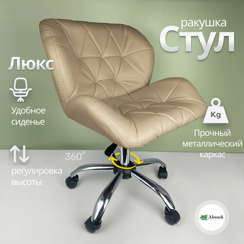 Стул ALMADI «Ракушка», на колесиках, экокожа, с регулировкой высоты, бежевый: сравнение цен, характеристики, фото, актуальное наличие и цены.
