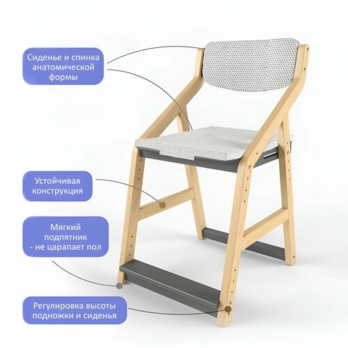 Купить Стул растущий для школьника Робин Wood (Вуд) с чехлом, цвет Комбо серый/Белый Велюр с доставкой по всей России.
