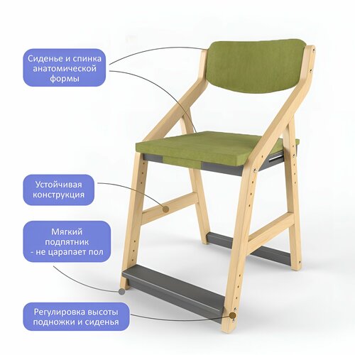 Стул растущий для школьника Робин Wood (Вуд) с чехлом, цвет Комбо серый/Олива: сравнение цен, характеристики, фото, актуальное наличие и цены.