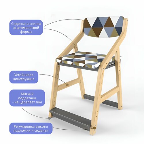 Стул растущий для школьника Робин Wood (Вуд) с чехлом, цвет Комбо серый/Ромбусы: сравнение цен, характеристики, фото, актуальное наличие и цены.