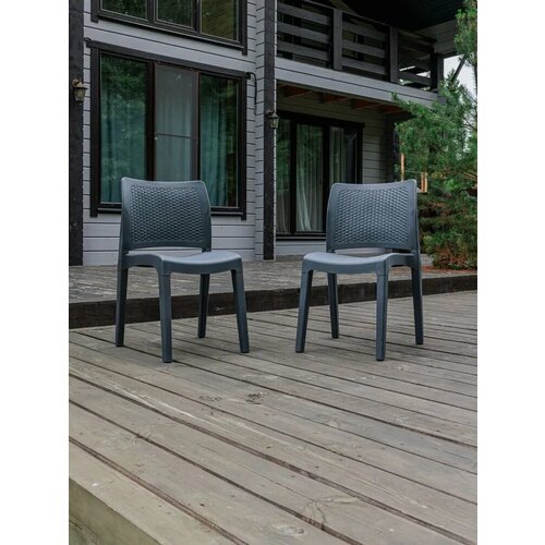 Стулья имеют современный дизайн и выполнены в графитовом цвете, что позволяет им гармонично вписываться в любой ландшафт. Материал изготовления - окрашенный в массе полипропилен с повышенной прочностью. Это обеспечивает долгий срок службы и устойчивость к внешним воздействиям Габариты каждого стула составляют 49х52х83 см, что позволяет комфортно разместиться на них двум взрослым. Максимальная нагрузка на стул составляет 120 кг, что говорит о его прочности и надежности. В комплекте идут два стула, что позволяет создать уютную зону отдыха на вашем участке.