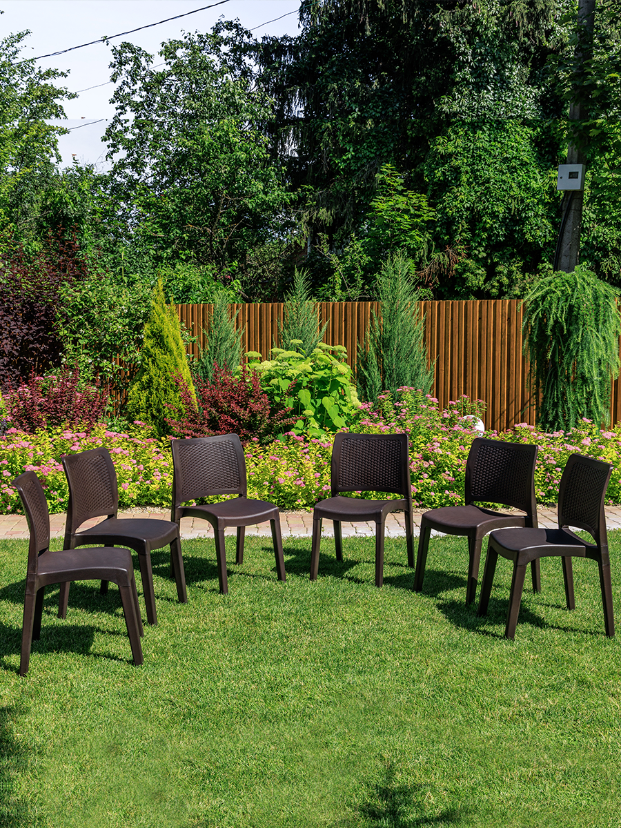 Набор садовых стульев JULY - это стильный и практичный выбор для вашего сада. Изготовленные из прочного полипропилена, эти стулья обеспечивают долговечность и надежность в использовании. Коричневый цвет стульев придает им элегантный и современный вид, который будет гармонично смотреться на любом садовом участке. Максимальная нагрузка на каждый стул составляет 120 кг Особенностью этих стульев является жесткое сиденье, которое обеспечивает комфорт и поддержку во время отдыха. Выбирая набор садовых стульев JULY, вы получаете стильный, надежный и удобный продукт для вашего сада