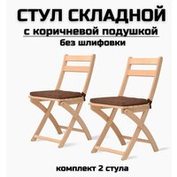 Купить Стул складной деревянный для дома и дачи, без шлифовки, с коричневыми подушками комплект 2 стула с доставкой по всей России.