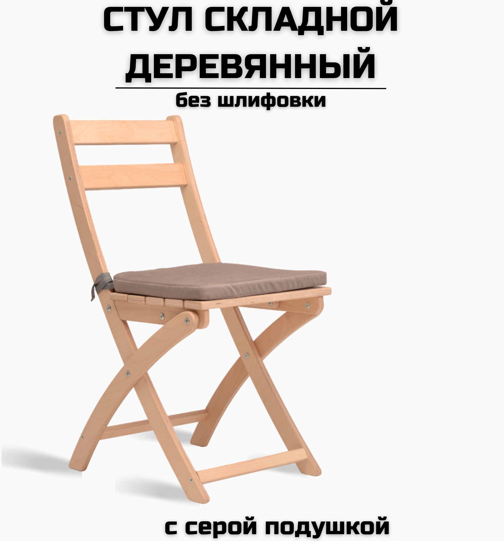 Стул складной деревянный для дома и дачи, без шлифовки, с серыми подушками: сравнение цен, характеристики, фото, актуальное наличие и цены.
