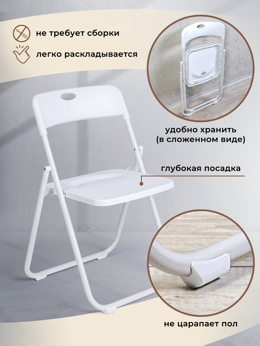 Стул Gemlux GL-FC-02W, складной, металлический, белый, 100кг: сравнение цен, характеристики, фото, актуальное наличие и цены.
