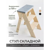 Стул стремянка ступенька ONCELI деревянная складная 3 ступени с подушкой
