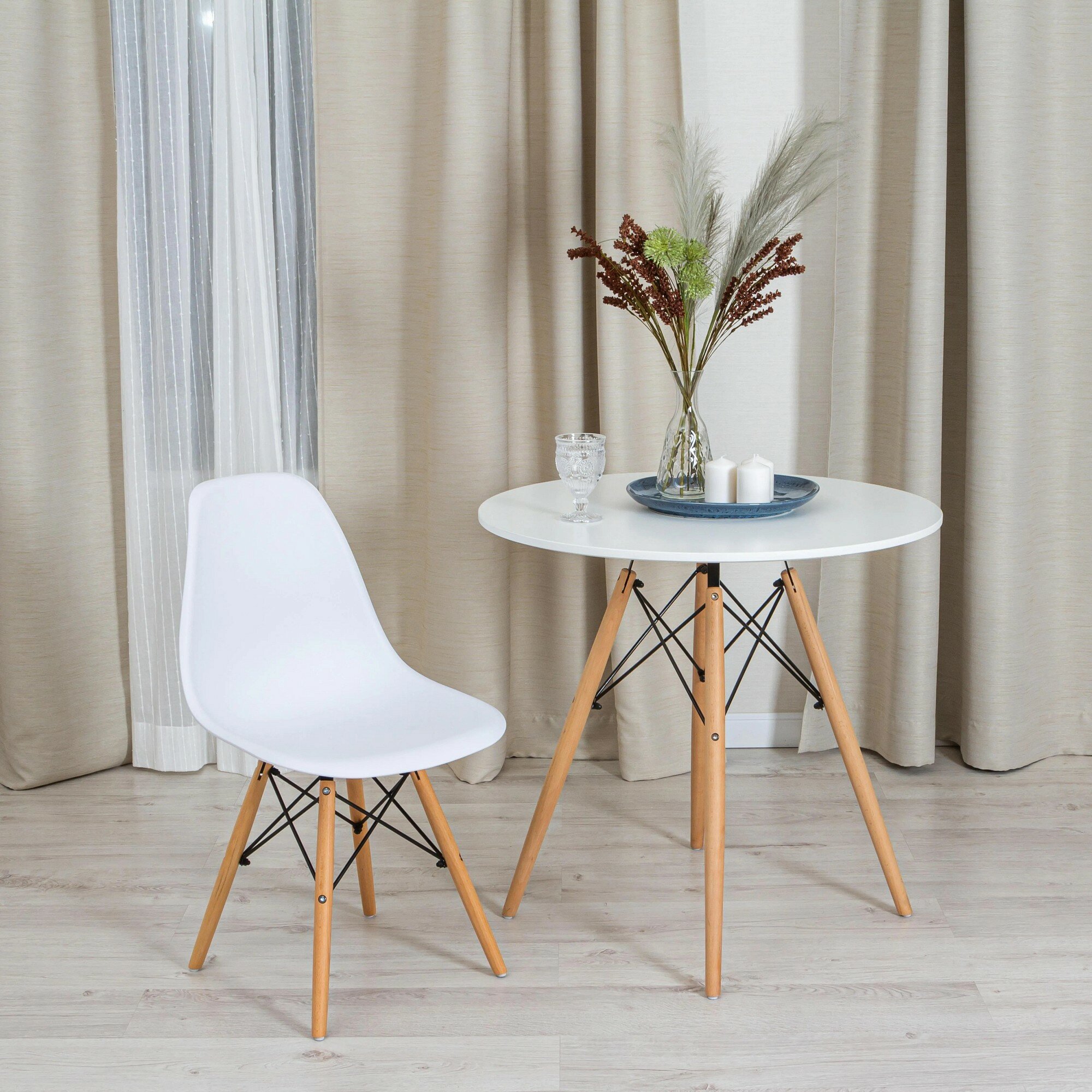 Стул TetChair CINDY EAMES 1801, дерево бук/металл/сиденье пластик, 45x51x82 см, White (белый)