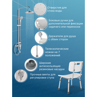 Стул для ванны и душа Титан со спинкой - полезный прибор, который сделает водные процедуры проще. Крепкий, устойчивый и компактный. Широкое сиденье — изготовлено с учетом анатомических особенностей позвоночника.