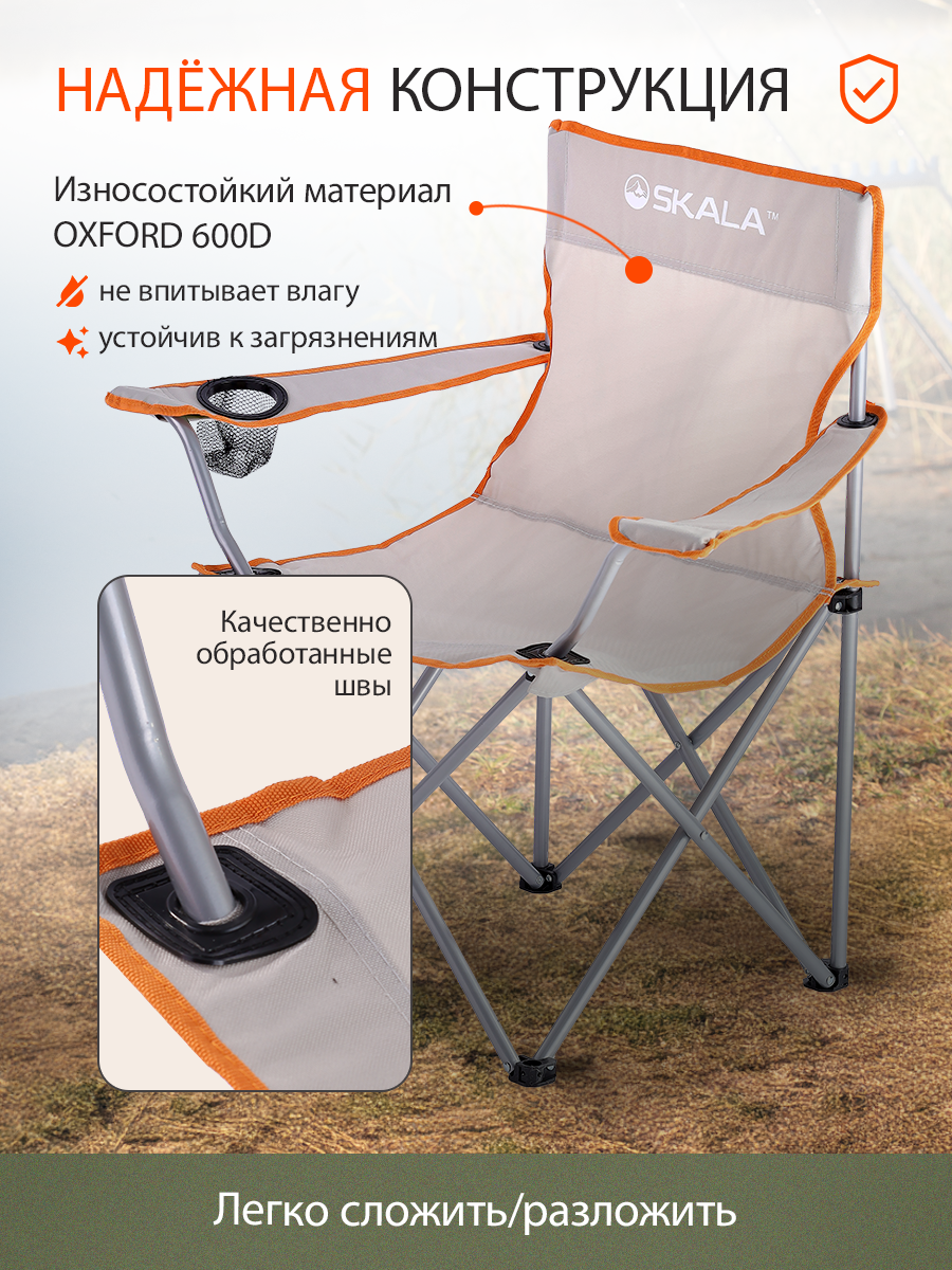 Стул туристический складной в чехле с подстаканником, до 110 кг, серый с оранжевым: сравнение цен, характеристики, фото, актуальное наличие и цены.