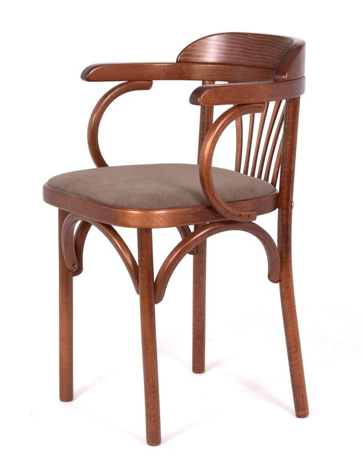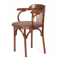 Стул деревянный Венский средний тон, коричневый с мягким сиденьем из экокожи, с подлокотниками