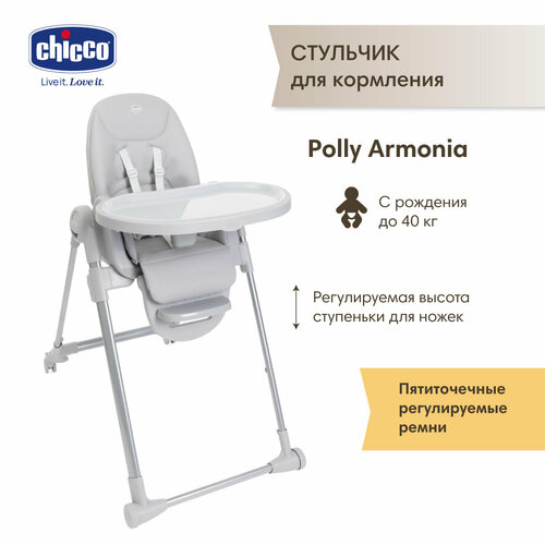 Стульчик для кормления Chicco POLLY ARMONIA для малышей с рождения до 40 кг. Стульчик детский выполняет несколько функций. С первых дней жизни это шезлонг для новорожденных, с 6-ти месяцев - стул для кормления, с 3 лет - первый стул для творчества и других важных дел.