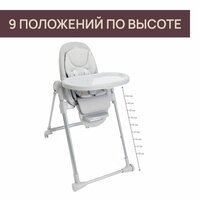 Особенности: Эргономичный вкладыш из 100 органического хлопка, поддерживает правильное положение малыша Мягкий чехол из премиального нежного экоматериала Маневренный, легко перемещать благодаря 4 колесам 3 положения наклона спинки 9 положений регулировки по высоте, подходит к большинству моделей столов Компактный в сложенном виде, стоит без опоры Идеален для маленькой кухни У столика с большим съемным подносом 4 положения Когда столик не используется, он крепится на задних ножках Регулируемый угол спинки и подножки, регулируемая высота ступеньки для ножек Пятиточечные регулируемые ремни для фиксации малыша