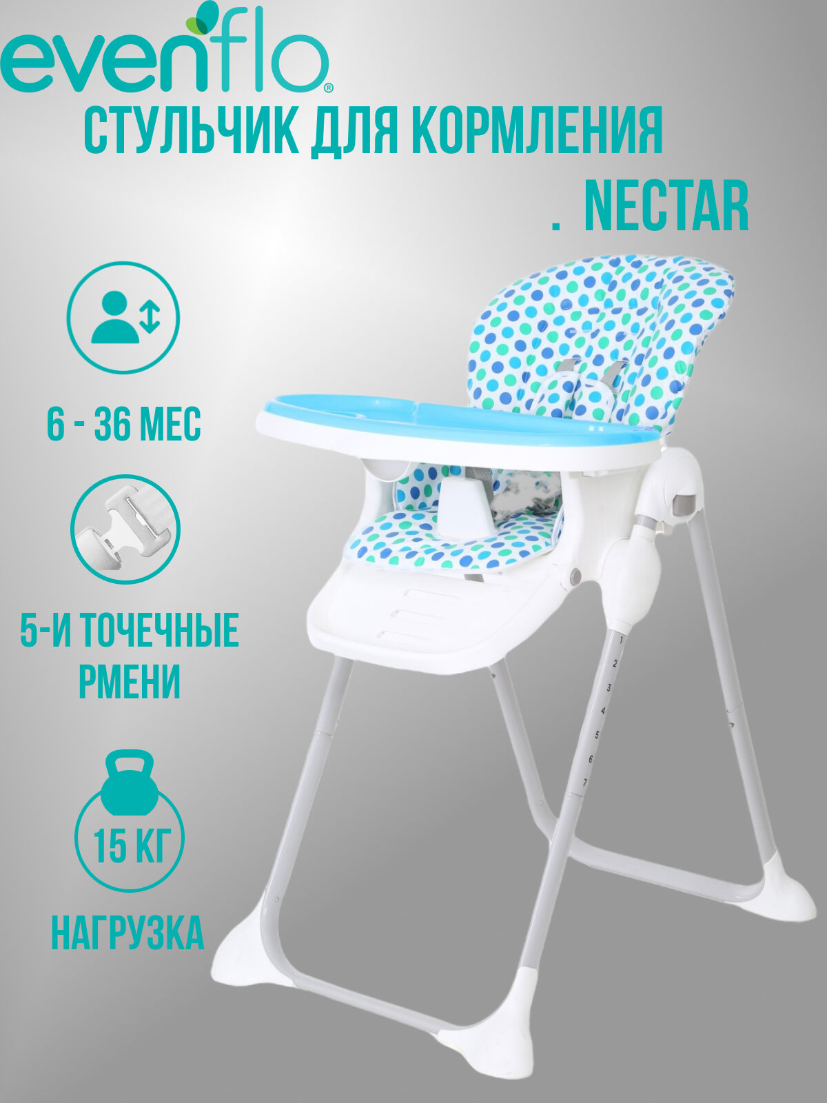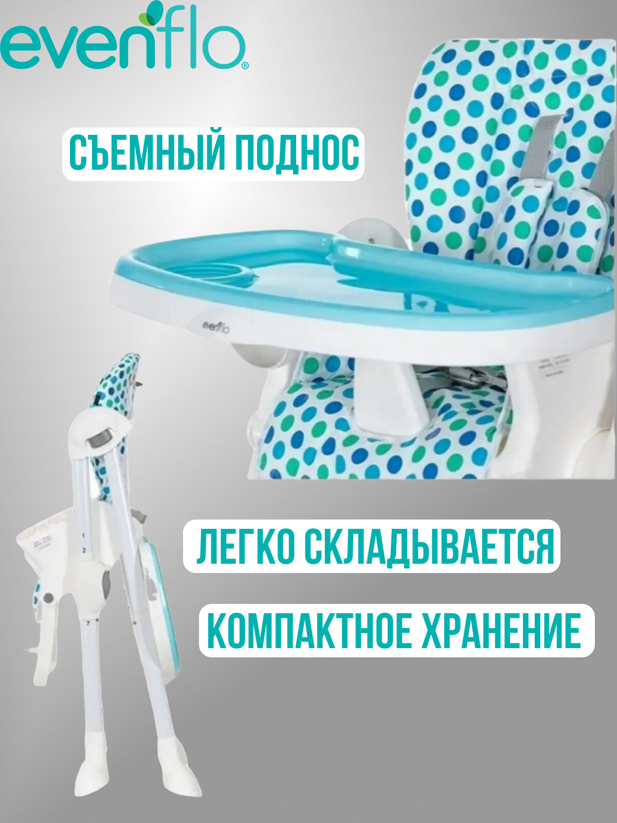 Стульчик для кормления Evenflo Nectar Y9800 KCBL, складной, голубой: сравнение цен, характеристики, фото, актуальное наличие и цены.