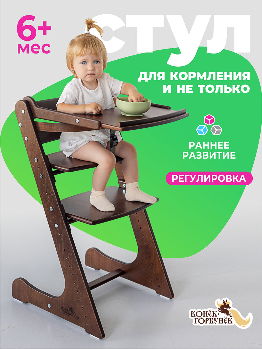 Стульчик для кормления Конек Горбунек Комфорт, растущий стул для детей со столиком и ограничителем от 6 месяцев, орех: сравнение цен, характеристики, фото, актуальное наличие и цены.
