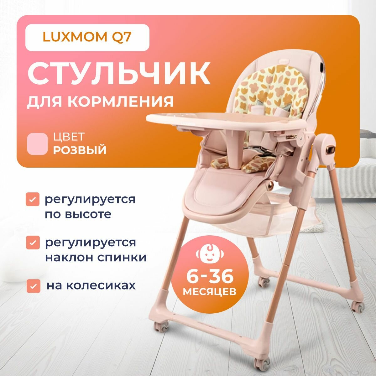 Стульчик для кормления LUXMOM Q7, розовый, экокожа, 5 уровней высоты, складной: сравнение цен, характеристики, фото, актуальное наличие и цены.