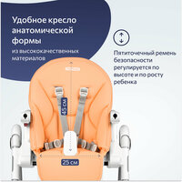 Стульчик оснащён пятиточечными регулируемые ремни безопасности для надежной фиксации малыша. Так же у стульчика есть анатомический разделитель для ножек.