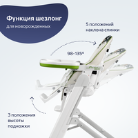 Компактный и многофункциональный стульчик, который растет вместе с малышом. Первые месяцы его удобно использовать для отдыха, начиная с шести месяцев для еды и игр. Стульчик Siesta можно использовать без столика, чтобы ребенок мог сидеть за столом со взрослыми. Одобрен для детей с рождения и до трех лет.