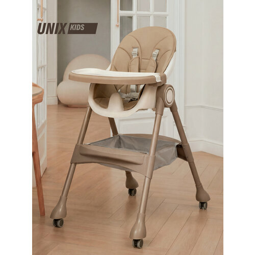 Купить Стульчик для кормления ребенка 3 в 1 UNIX Kids Classic Camel с 6-ти месяцев, складной, на колесиках с доставкой по всей России.