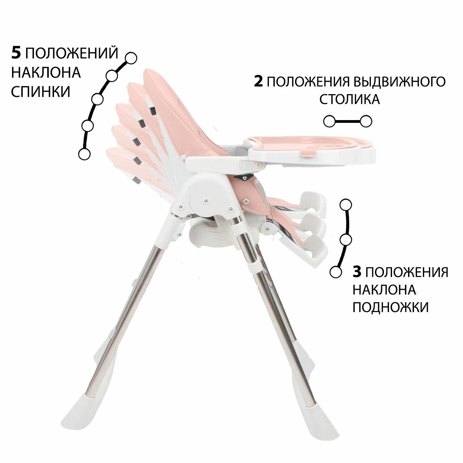 | Регулировка | высоты стульчика, наклона спинки, положения подножки, положения столика |
