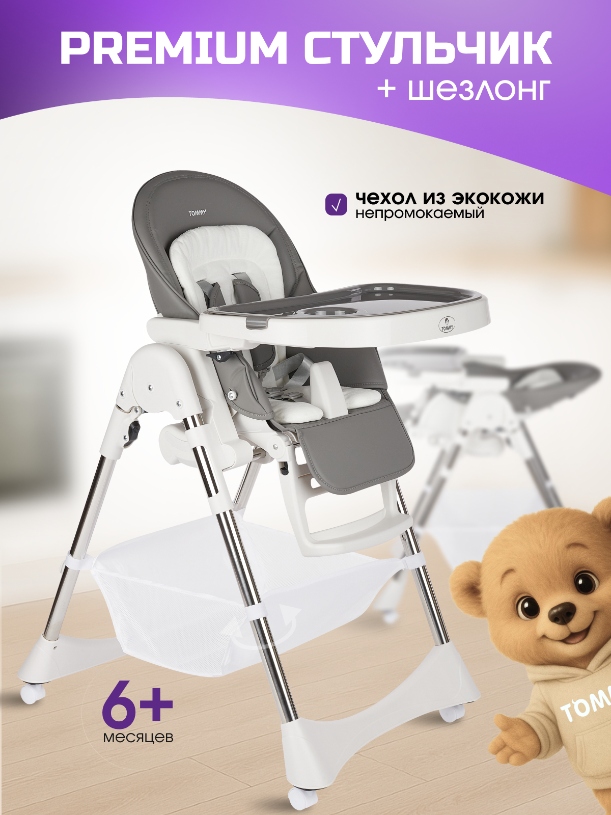 Купить Стульчик для кормления (6-36 месяцев) Tommy Bon appetit темно-серый с регулировкой спинки, столика, высоты, подножки с доставкой по всей России.