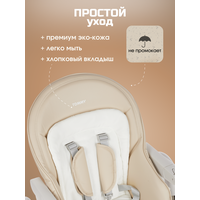 Безопасность - то, на чем мы сделали особый акцент. Съёмный 5-точечный регулируемый ремень с накладками из экокожи надёжно удерживает малыша в стульчике. Разделитель для ножек, расположенный на сиденье, можно при необходимости снять, адаптируя стульчик под растущего ребёнка.