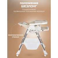 Комфорт Вашему малышу гарантирует съёмный чехол на сиденье, выполненный из качественной экокожи, с мягкой и приятной на ощупь вкладкой из фибро-ткани в комплекте. 7 регулировок по высоте и подставка для ног позволяют подобрать оптимальное положение для кормления и развивающих игр, а также подстроить стульчик под общий стол. 5 положений наклона спинки (от 110 до 150 градусов) превращают его в удобный шезлонг для отдыха после еды или дневного сна. Регулировка наклона подножки в 3 положениях обеспечивает ортопедически удобное положение ножек малыша, способствуя правильному развитию осанки.