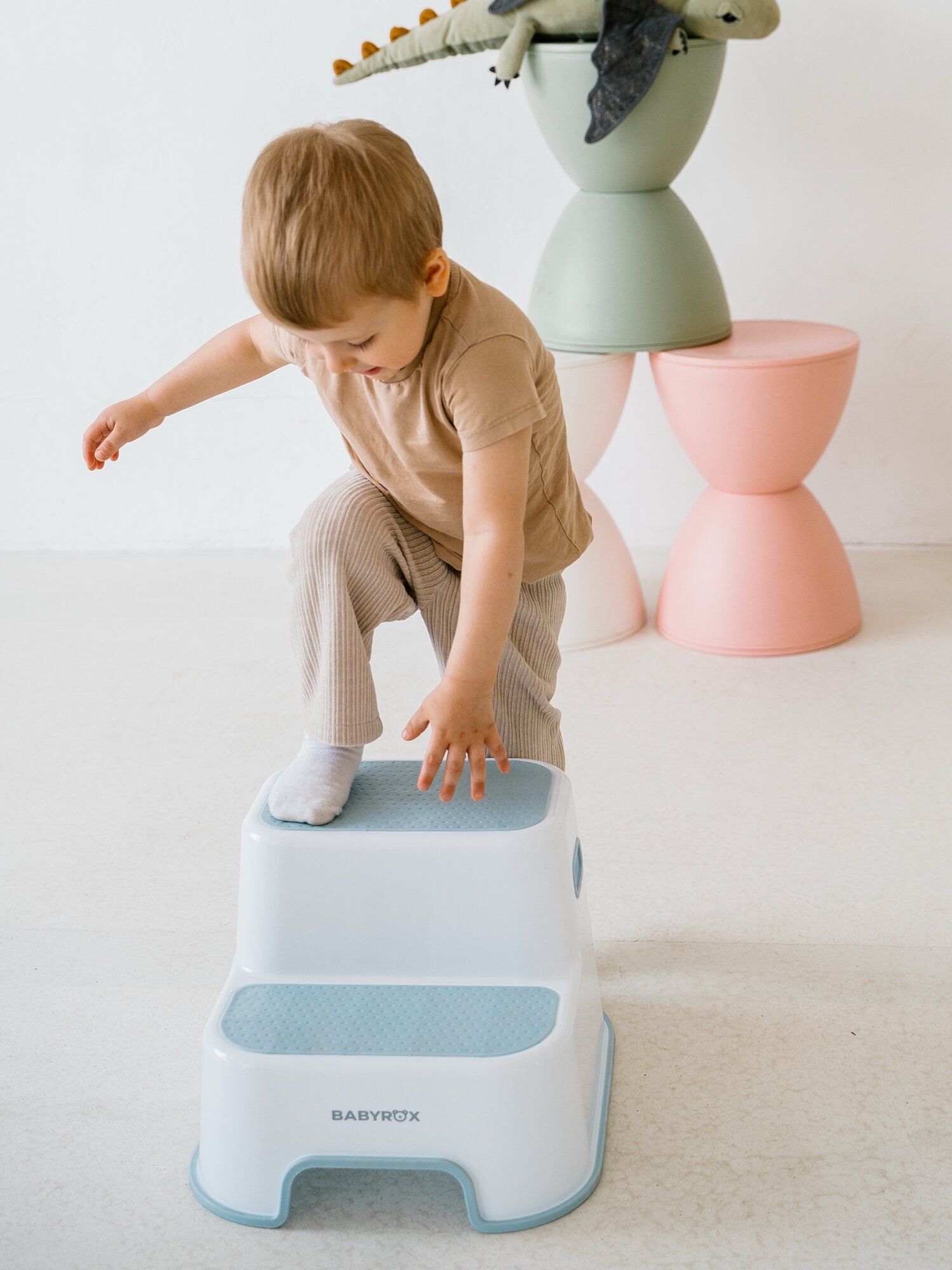 Стульчик-подставка BABYROX - идеальное решение для безопасности и комфорта вашего ребенка во время ежедневных гигиенических процедур. • Имеет резиновое покрытие, благодаря которому ребенок может надежно на нем стоять даже с мокрыми ногами. • Изготовлен из прочных и безопасных материалов, не содержит бисфенол А. • Устойчиво стоит на полу, даже если ребенок много двигается, благодаря широким резиновым планкам. • Удобные ручки, чтобы переносить стульчик. • Компактные размеры (длина х ширина х высота): 37х34х26 см. • Выдерживает до 100 кг. • Представлен в 6 цветах. Широкая цветовая гамма позволяет выбрать подходящий цвет стульчика-подставки для вашей ванной комнаты, чтобы он гармонично вписался в интерьер и стал его стильным дополнением. Ваш ребенок сможет самостоятельно чистить зубы или мыть руки, не требуя помощи взрослых.