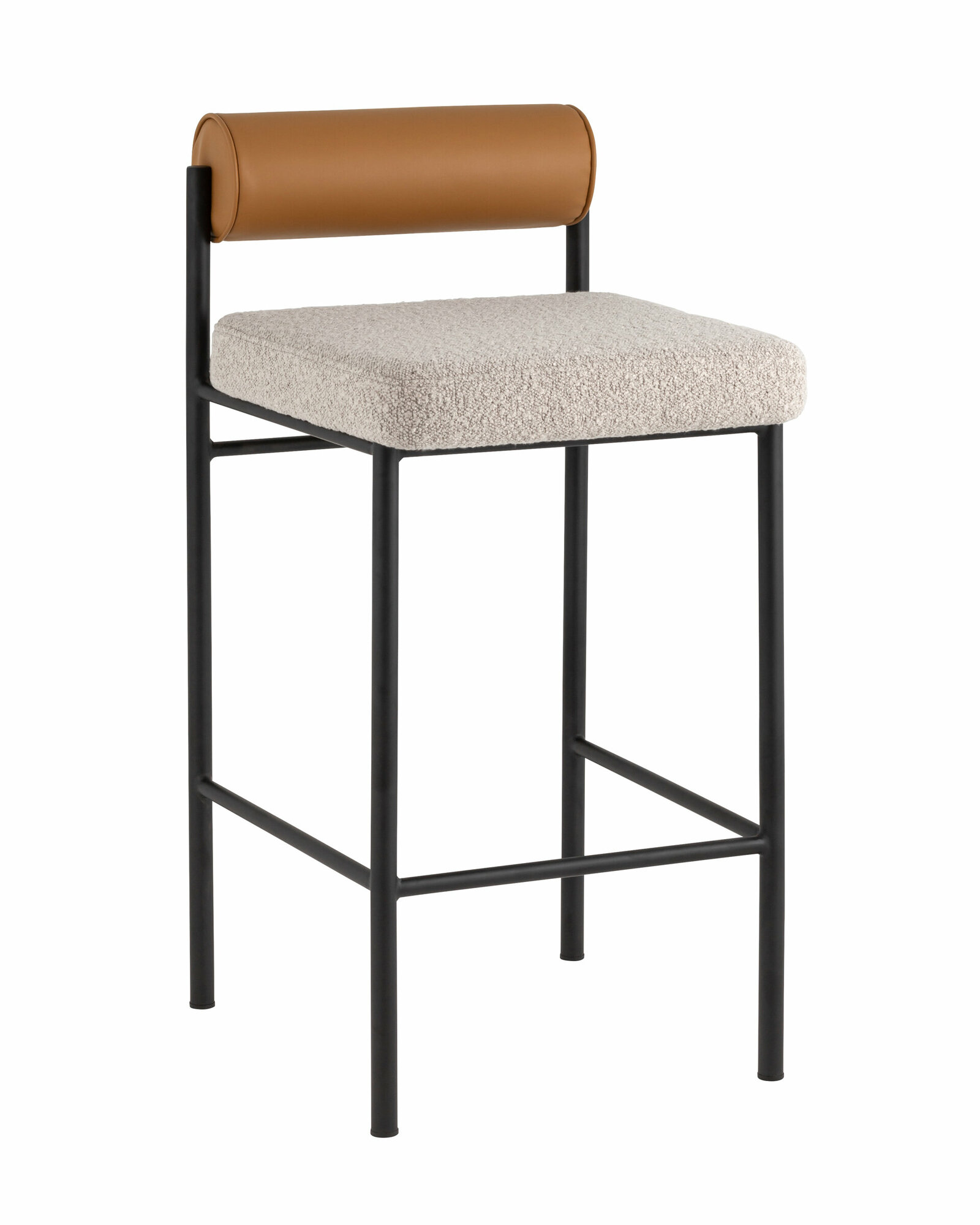 Оригинальный барный стул Балла характеризуется лаконичным дизайном и надежностью конструкции. Прекрасно дополнит интерьеры кухни или гостиной. Обивка мягкой спинки в форме валика выполнена из высококачественной экокожи, что делает модель не только красивой, но и практичной. Экокожа отличается прочностью и долговечностью, при этом легко чистится от пыли и грязи. Сиденье стула выполнено из качественной ткани букле. Этот материал обладает высокой износостойкостью, сохраняет свою форму даже при интенсивном использовании и приятен на ощупь.