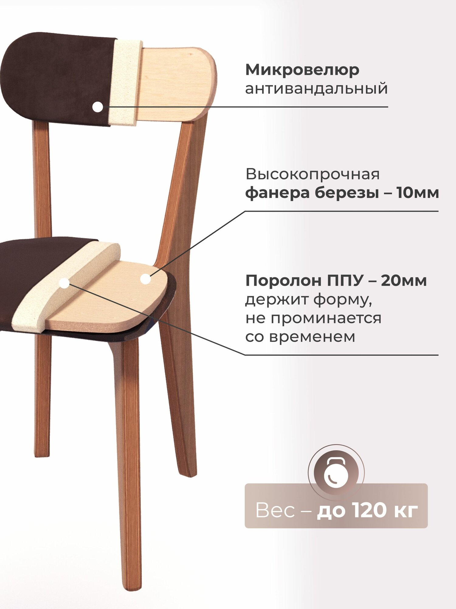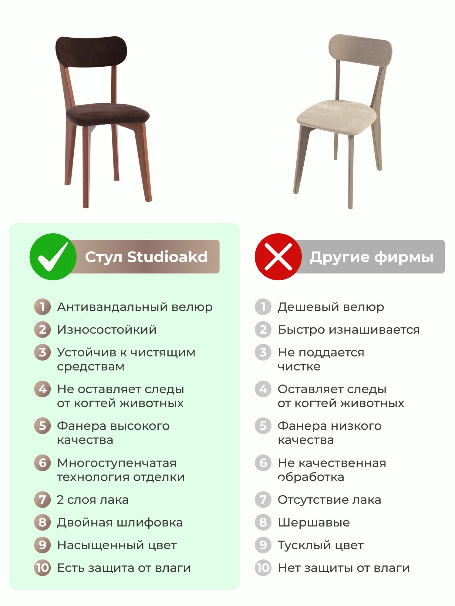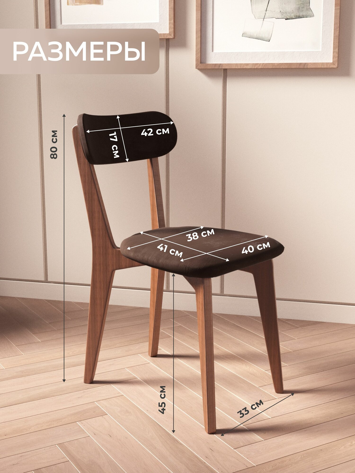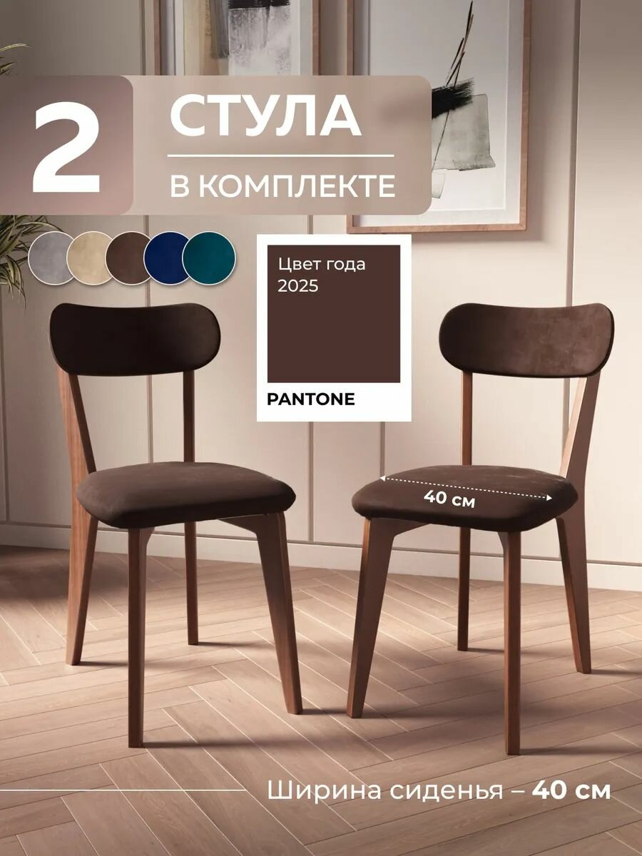 Стулья для кухни в наборе из 2 шт - практичное приобретение от бренда Studioakd! Легкий, но прочный стул обеденный, дополнен мягкой спинкой. Стулья для кухни деревянные выполнены из березовой фанеры, наполнитель в виде поролона, надежно сохраняет форму изделия мягкой и выпуклой и не теряет ее даже в условиях интенсивной эксплуатации. Ножки покрыты лаком, что защищает их от царапин и других повреждений. Стул велюр для кухни шириной 40 см, что удобно в маленькой по площади кухне. Коричневые стулья для кухни из микровелюра приятные на ощупь с бархатной текстурой. Эффект аквастоп, которым также обладает ткань, препятствует впитыванию влаги. Стулья для кухни мягкие отлично впишутся в любое помещение. Разместите комплект стульев в кухне или столовой - стильный набор подарит пространству домашний уют и эстетику. Деревянные стулья часто используют как стулья для кафе, они создают комфортную атмосферу для посетителей. Сборка качественной и эргономичной мебельной продукции российского производства (с полным циклом технологического процесса в городе Москва) обычно не вызывает никаких сложностей. Срок службы изделия - 10 лет. В линейке бренда представлены модели мебели разных цветов из различных материалов, чтобы вы могли выбрать идеально подходящий к вашему интерьеру вариант.