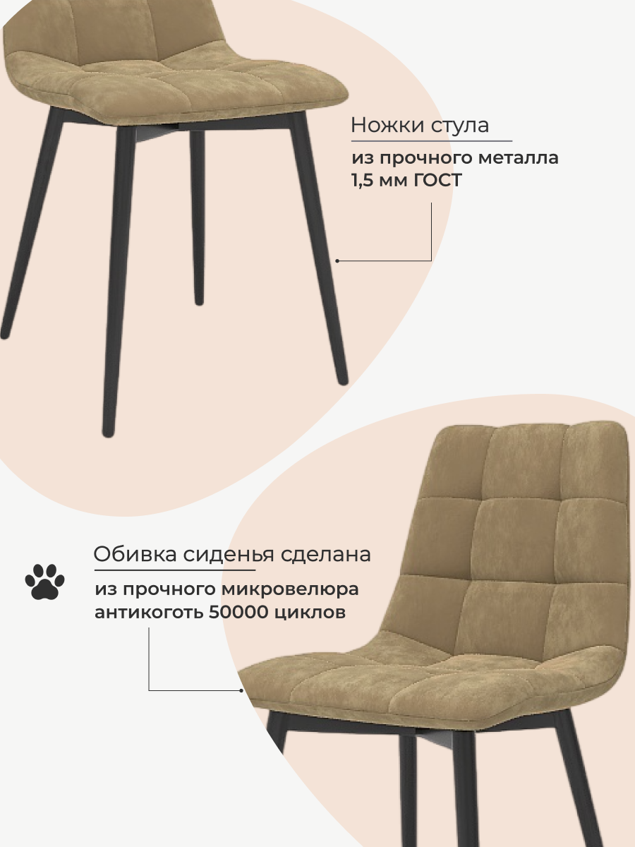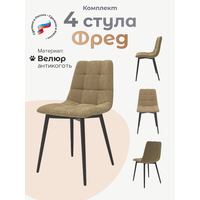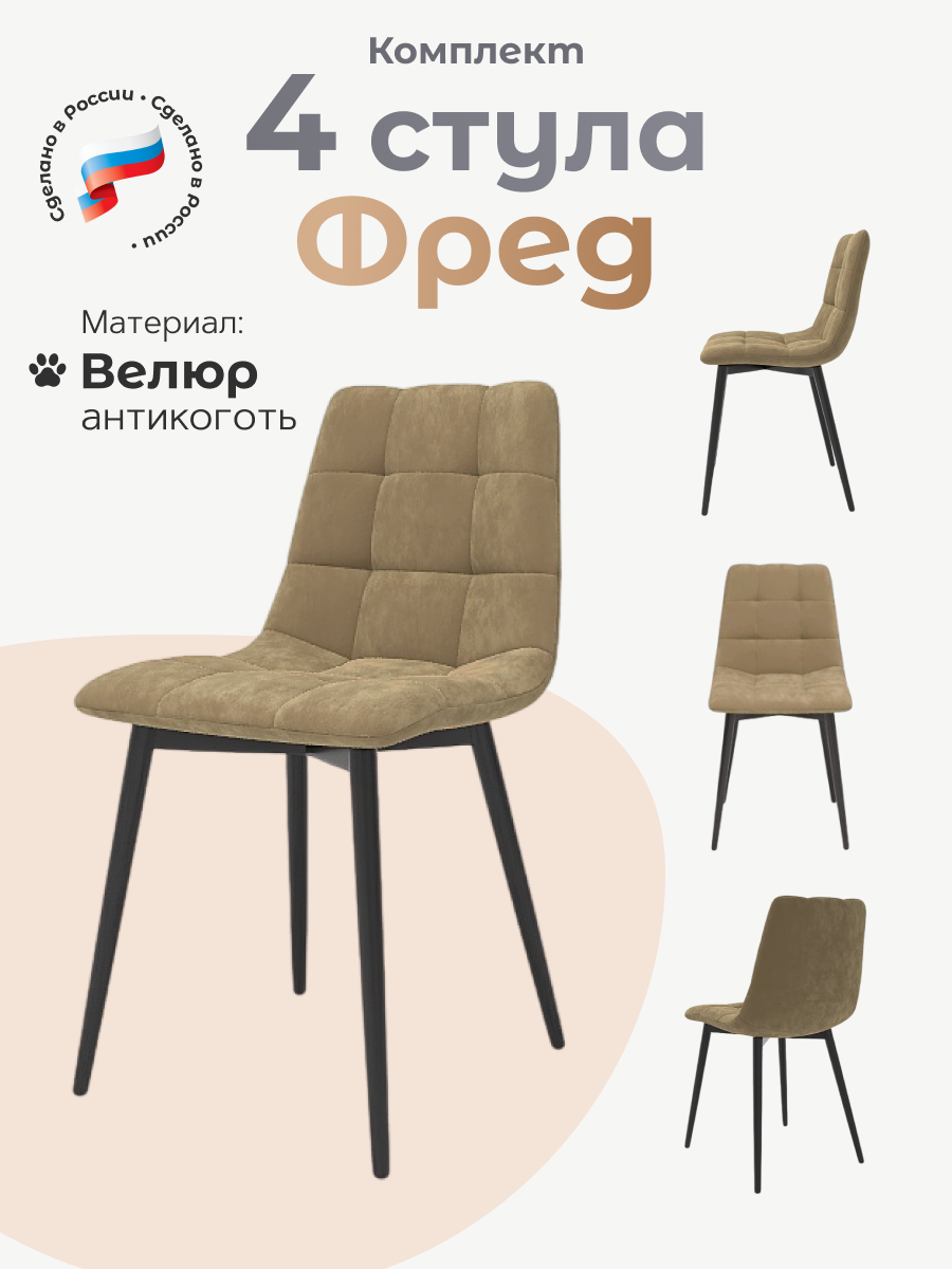 Стулья для кухни 4 шт комплект Фред, Бежевый велюр, черные ножки: сравнение цен, характеристики, фото, актуальное наличие и цены.