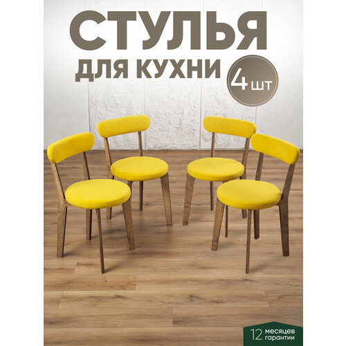 Мягкие стулья со спинкой в наборе из четырех штук - идеальные стулья для кухни! Легкий и прочный стул с круглым сиденьем на четырех устойчивых ножках дополнен мягкой спинкой. Мебельное изделие выдерживает нагрузку до 120 кг, обеспечивает здоровое и комфортное положение сидя за кухонным столом. Компактную модель отличает каркас - основание из натуральной березовой фанеры толщиной 18мм, что обеспечивает надежную и не шаткую конструкцию. Наполнитель листовой поролон толщиной 40 мм в сидушке и 20мм в спинке, который надежно сохраняет форму изделия мягкой и приятно выпуклой и не теряет ее даже в условиях интенсивной эксплуатации. Ножки из березы покрыты террасным маслом тиккурила, оно обладает влагостойким свойством защищает кухонный стул он биоповреждений. Деревянные ножки долговечные, в отличие от металлических не меняют форму, не гнутся, а надежные крепления не сломаются. Эстетичный деревянный стульчик в лаконичном дизайне элегантно впишется в помещение маленькой или большой кухни или столовой, гостиной или зала, спальни или детской комнаты, офиса, студии или салона красоты, ресторана или кафе в любом стиле: современный, лофт, классика, скандинавский. Комплект кухонных стульев 4шт будет удобен в виде офисной мебели, дополнит обеденную кухонную зону в доме или квартире, дачном домике, а также рабочее место школьника или студента, подойдет и для детей, и для взрослых.