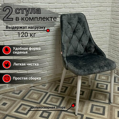 Комплект стульев для кухни Баро 2шт антивандальный велюр с краш эффектом в темно-сером цвете ( Plush graphite), опоры белые. Удобные стулья подойдут к любому стилю вашего интерьера (классический, скандинавскому, лофт, минимализм и т. п.). Стул кухонный Баро обладает высокими показателями эргономики: удобное сидение и высокая спинка делают его комфортным для длительного сидения. Ширина стула 49 см, высота стула 91 см, высота от пола до сиденья 47 см. Универсальный вариант для любых помещений (дом, дача, кафе и офис). Особенностью дизайна является имитация каретной стяжки на спинке. Кухонный стул имеет прочные и надежные ножки с пластиковыми заглушками, выдерживающие нагрузку до 120 кг. Велюровая ткань плотностью 350 г/м2 имеет устойчивость к истиранию 100 000 циклов по тесту Мартиндейла. Обивка мягкая, износостойкая, легко чиститься. Каркас – березовая фанера, экологически чистый материал, который не выделяет вредных веществ даже на солнце. Фактический цвет может немного отличаться, в зависимости от цветопередачи экрана вашего устройства.
