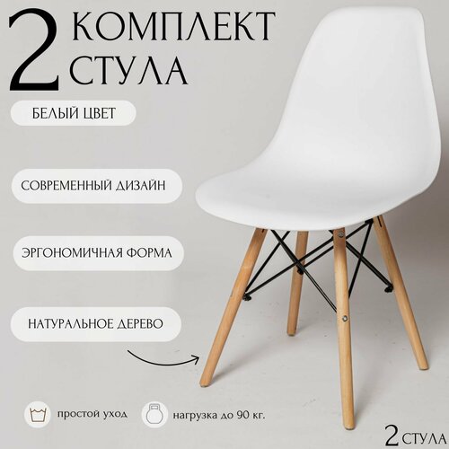 Стулья для кухни EAMES представляют собой комплект из двух стульев, выполненных в белом цвете.