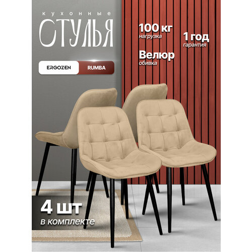 Набор из 4 кухонных стульев Ergozen Rumba | Велюровая обивка, металлический каркас и эргономичная посадка для семейного уюта