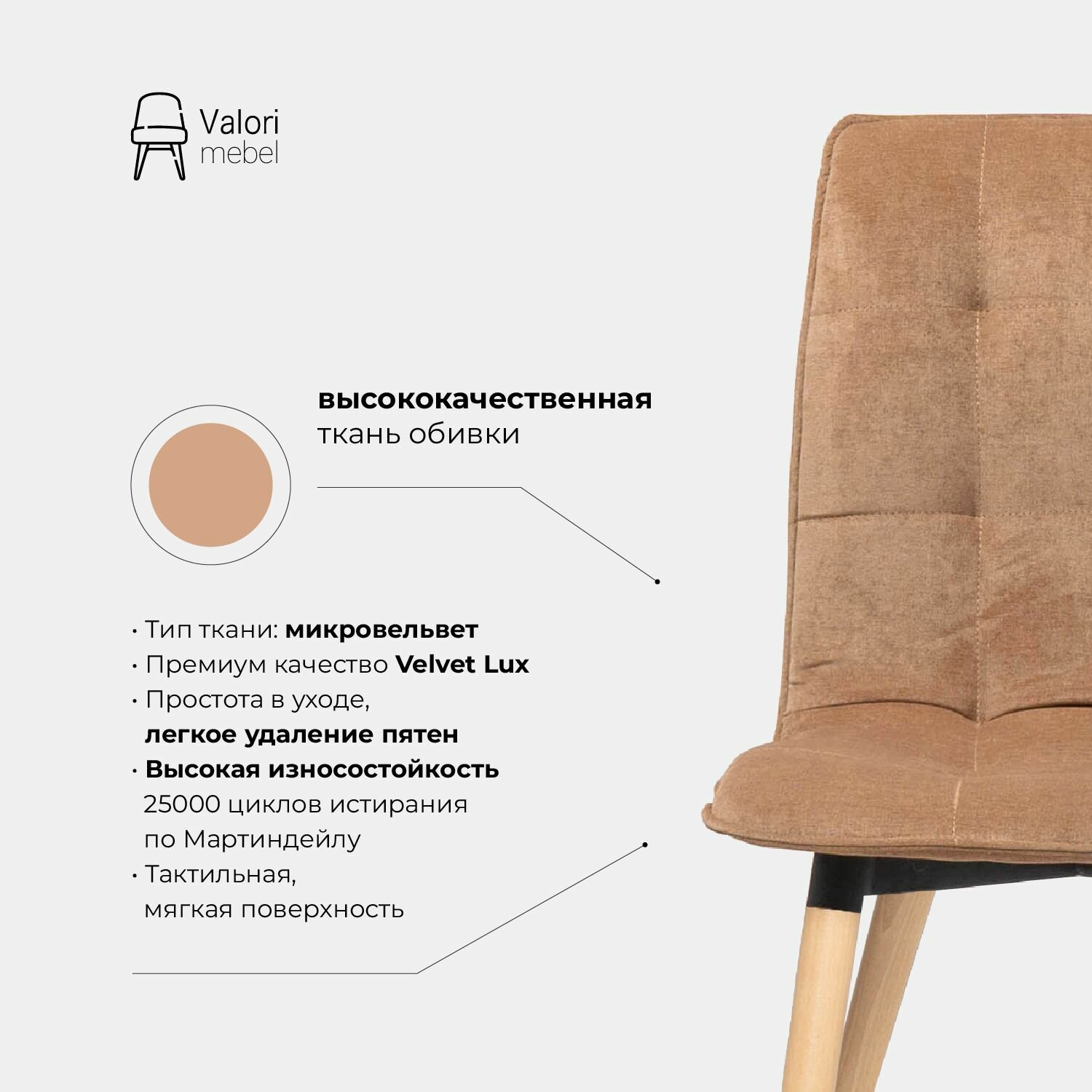 Стулья для кухни Кинель Valori, велюр светло коричневый, массив дерева — бук/бесцветный лак, 1 шт.: сравнение цен, характеристики, фото, актуальное наличие и цены.